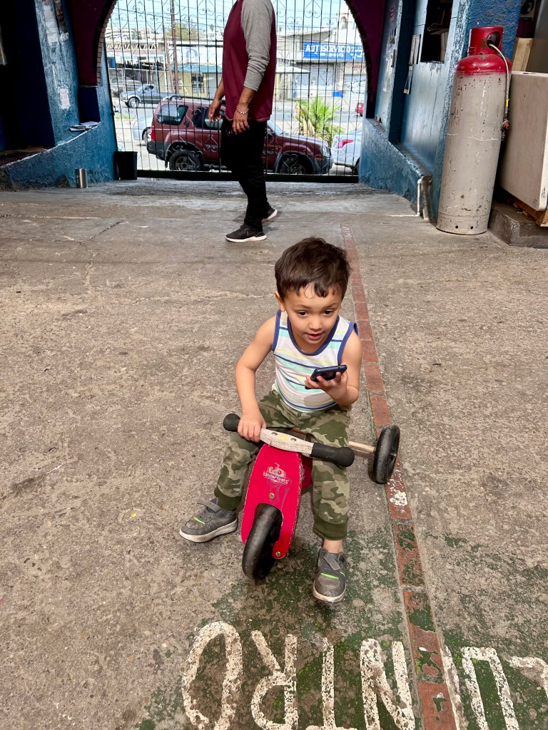 We went back downstairs and were told that many of the families had gone to church, and then to the Plaza in downtown Mexicali for an outdoor market, so there weren’t many children around at the moment. Sundays are the only days the resident migrants are allowed to leave the shelter. By doing so, they run the risk of being approached and coerced by Coyotes (smugglers), or even worse, being spotted by drug cartel members who might be looking for them. It became clear there would be no art lesson.