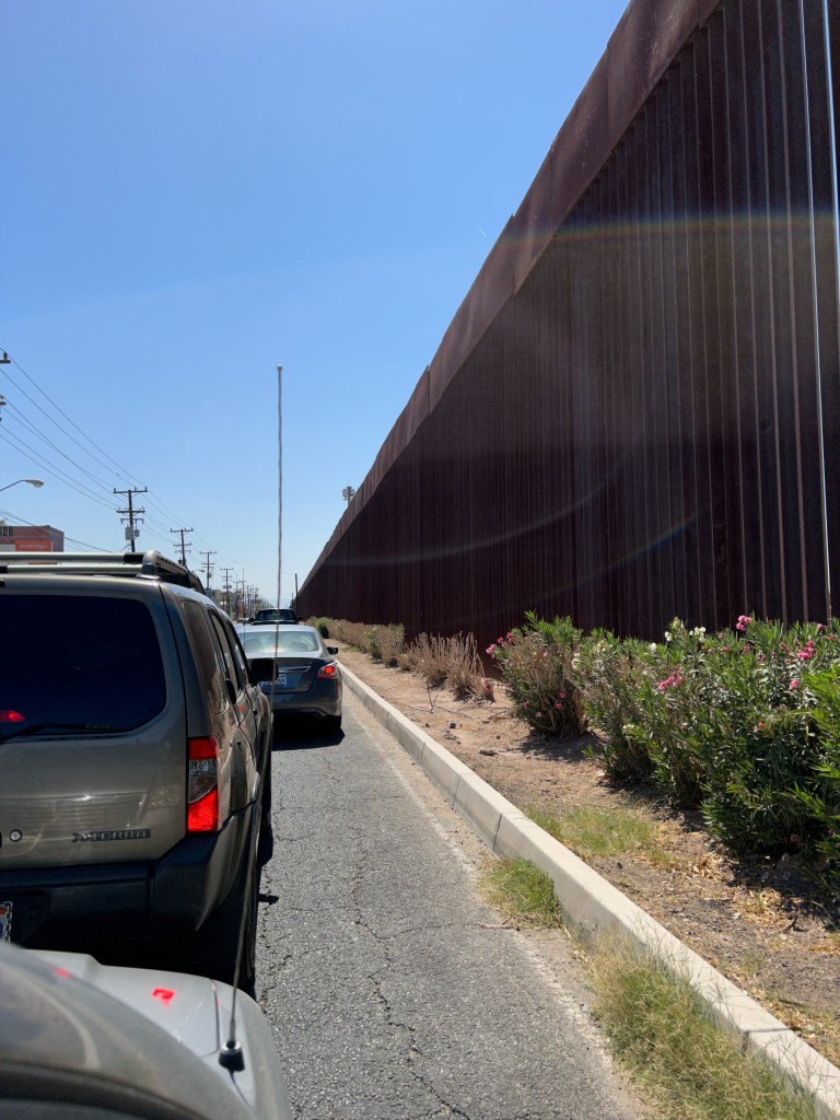 After two hours of beading, we drove to the border wall to join a line of cars about a mile long. Inching our way for three hours along the tall rust-colored fence that separates Mexico and the United States, we finally crossed through at 6 p.m. After saying goodbye to Hugo in Calexico, Siri guided me through long, narrow, empty roads past many large fields stacked with hay bales or filled with date palms. I thought of all the farmworkers who harvest in that intense heat as high as 120 degree in midsummer. Farmworkers start working at 3 or 4 in the morning, and often end their workdays by 10 am.