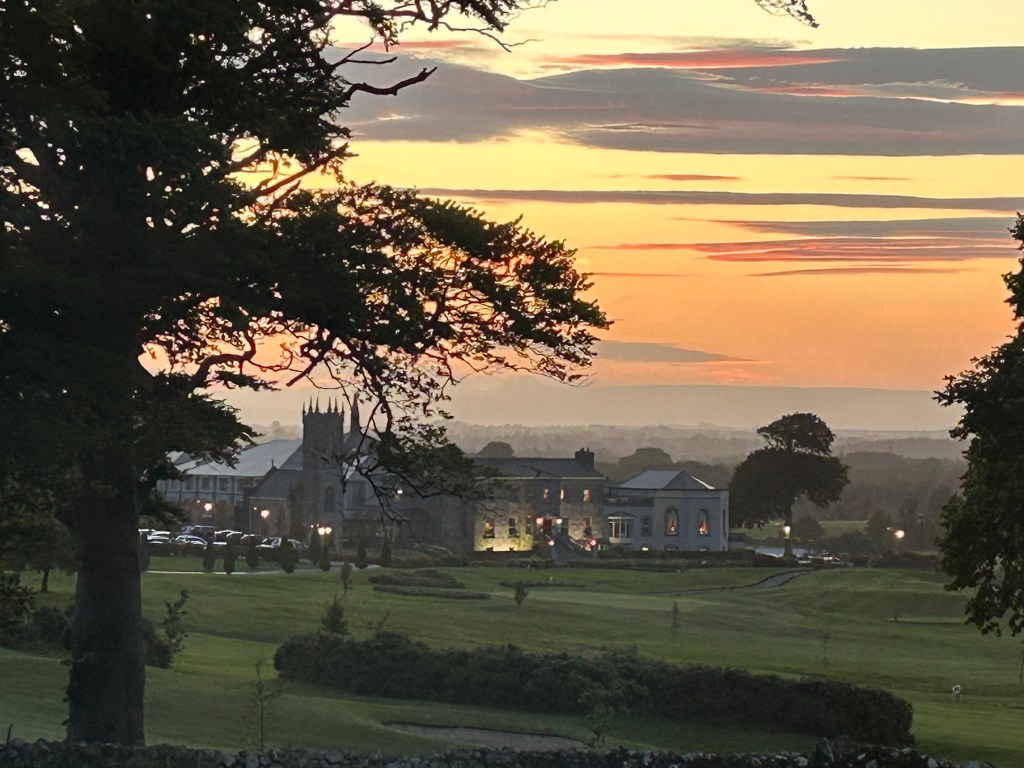 I woke up around 10:30 pm and looked out the window just outside my bedroom door. Glenlo Abbey, a five-star hotel and country club, was starting to light up under a prolonged setting sun in the short nights of summer in Ireland. It was a lovely end to a very long day.