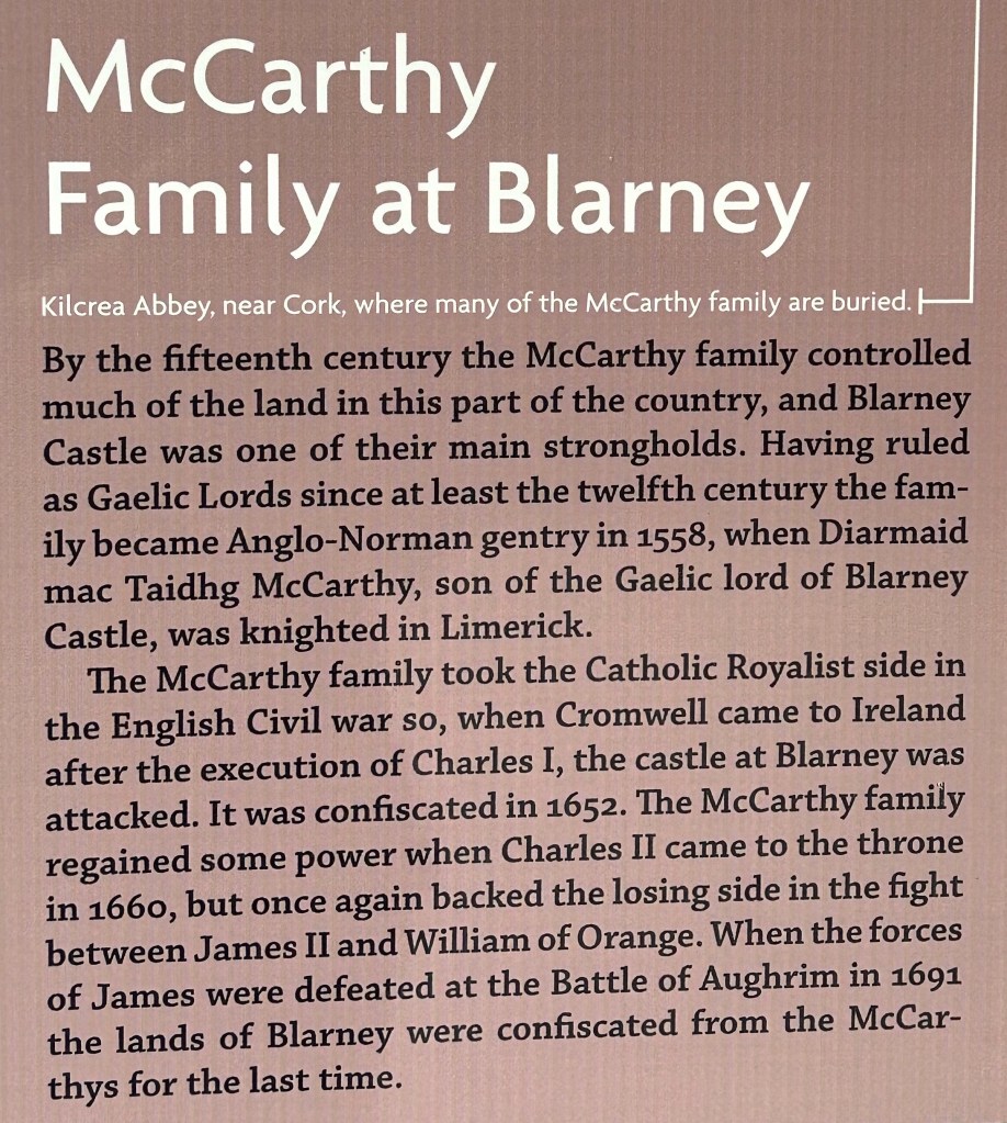 Something I didn’t know was that there is McCarthy family history there. I came to this part of Ireland to experience the surroundings of my ancestors. Whether it is certain or not, I am claiming to be part of the McCarthy clan connected to this castle!