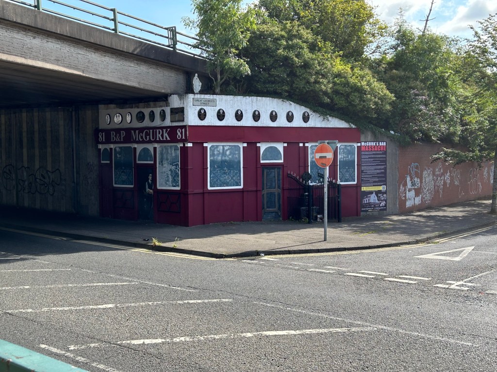I was ready to go by 9 a.m. the next morning, but wanted to take a few photos of Belfast before heading back to Dublin. I saw row houses with graffiti. I found a large sign hanging on a fence calling for Irish Unity. There was a mural of a bombed-out pub called McGurk’s. And there was a scary-looking Anglican church next to Orange Hall on the main street through Belfast.
