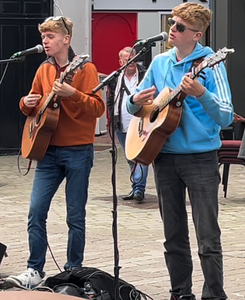 The next day was Saturday, and it was recommended that we go to the farmer’s market in Galway. I made my way there by walking the one-and-a-half miles to the bus stop just inside the city limits of Galway, then paying two euros to be dropped off at City Centre. The streets were busy, and I could hear music playing. Galway has several streets blocked from car traffic. There were buskers everywhere. I saw twin brothers playing guitar and singing with the exact same voice. They looked very Irish, with strawberry blonde hair, fair skin, and freckles. The next street artist I saw was a puppeteer. He had a marionette of himself playing the violin. It was mesmerizing to watch. Many children were standing around watching him.