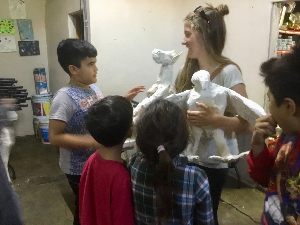 We unloaded supplies and set up in the small room where the residents eat. The children came in, and Hayley used her basic Spanish to explain the project. We brought prototypes of each phase so they could understand. After working for an hour and a half on the first phase of piñata-making, we took a break so the shelter residents could eat lunch.