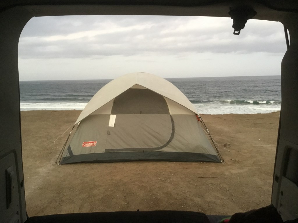 By this time, it was late afternoon and Hayley and I had planned to camp 35 miles south of Tijuana and wanted to check out the campground before dark. We headed south and made it to Alisitos where we set up camp on a cliff above the ocean. After eating dinner in a local restaurant, we fell asleep to the sound of the waves.